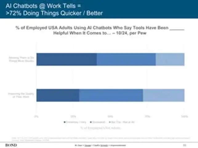 趋势总结 综上所述,Mary Meeker 2025年的 AI 趋势报告为我们描绘了一幅波澜壮阔的图景:人工智能正加速迈入主流,深刻影响生产力、教育、医疗、创意和经济等方方面面。这一波 AI 浪潮的速度和广度前所未有——无论是 ChatGPT 用户爆发式增长、企业争相投资布局,还是各行业涌现的新应用,都证明了 AI 正从科技前沿走向社会舞台的中央。报告也提醒我们理性看待这股热潮:如同历次技术革命,AI 带来巨大机遇的同时也伴生风险和不确定性。从信息真实性、就业影响到监管滞后,每一道挑战都需要我们慎重应对。 总体而言,Meeker对 AI 前景持审慎乐观态度。就像投资家 Brian Rogers 所说:“从统计数据看,世界末日并不常发生”。换言之,不必过度担忧 AI 导致的末日场景。相反,我们更应关注如何发挥激烈竞争带来的创新动能、利用愈发强大的算力和算法优势,让 AI 为人类创造真正价值。AI 或许是继蒸汽机、电力、互联网之后人类迎来的又一次通用目的技术革命。只要我们积极打造良好的治理框架和伦理准则,与 AI “共舞”而非对抗,那么这个“超级工具”将帮助我们解决许多过去束手无策的难题——从疾病治疗到气候变化。正如 DeepMind 创始人哈萨比斯所言:“先解决 AI,本身就能用 AI 去解决其他一切问题”。展望未来,让我们在拥抱 AI 带来便利与创新的同时,也保持人文关怀和审慎思考,推动这场变革朝着对社会有益的方向发展。 报告原文链接:Mary Meeker《人工智能趋势报告(2025)》全文(PDF 下载)BOND Capital 官方网站https://echai.ventures/stream/inside-ai-economy-mary-meeker-report-2025 瑞泊AI实验室 ![]() ![]() 瑞泊(XrayBot)定位为「行业超脑」构建者,领先的人工智能国家高新技术企业、国家双软认证企业、科研成果转移转化基地、「北京市通用人工智能产业创新伙伴计划成员」大模型伙伴成员企业,2025年国家重点研发计划中标单位,国家级科研机构科技成果转移转化一等奖获得者,2024中关村论坛年会北京市人工智能行业大模型创新应用大赛一等奖获得者,2023年中国十大大模型案例及国家特色产业集群赋能典型案例大奖获得者、中国AI金雁奖“技术创新大奖”获得者。瑞泊坚守人工智能核心技术多年,2018年起即与国际主流的AI实验室同步开始了大模型技术的研发,是中国最早进入这一领域的机构之一。瑞泊「行业超脑」及「VIDYA」智慧认知大模型专注垂直行业领域,2025年3月率先发布「VIDYA X1」行业推理大模型并发布全栈智算一体机,服务金融、航运、工业、政务、医疗、教育、IT运维等众多行业,为企业集团、政府机构、城市建设“量身定制”注重降本增效及价值创造的数字化建设及转型解决方案。面向各垂直行业关键业务流程,瑞泊“嵌入式”的合作模式长期陪同客户逐步实现“一切业务数据化,一切数据业务化”的真正数字化转型。瑞泊核心团队的成员均来国内外著名高校相关领域的教授或博士,他们或曾担任世界五百强高科技企业的核心高管,或曾为国家级科研机构的学术领导者及技术专家;同时,瑞泊联合国家顶尖科研机构成立了联合试验室,确保了所交付项目理念的前瞻性与技术的先进性。瑞泊是中国目前在行业大模型领域中进入行业数量、获得商业合同数量、订单金额及与各大行业头部企业成立联合实验室数量领先的AI专业公司。瑞泊所有的产品均基于完全自主知识产权的核心技术,注重复杂业务逻辑与人工智能技术深度融合,善于将人类智能与机器智能无缝衔接,共生互补。伴随着全球范围内大模型等关键技术的突破以及瑞泊「VIDYA」智慧认知大模型的大规模商用,通用人工智能(AGI)及激动人心的全数字化世界正加速到来,瑞泊始终与您相伴,拥抱未来! |